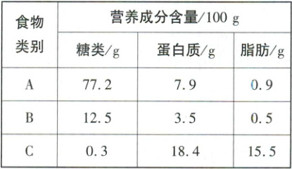 (写 1 种即可)。(2)根据表中的营养成分含量判断,食物类别