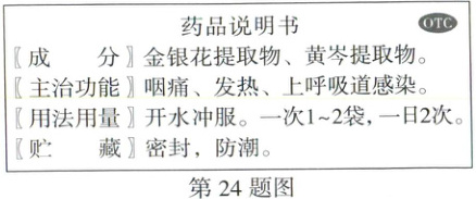 24. 某药品说明书内容节选如图,关于该药品的解读正确的是(