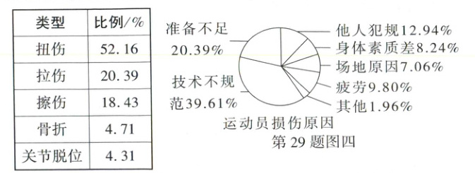 ②结合图四分析,为减少打篮球过程中的运动损伤,除严格按照规范的技术进行运动外,还有哪些好的避免运动损伤的方法?______(答出一条即可)。
