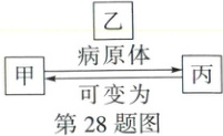 (2)图中表示诺如病毒患者的是_______,丙和甲的区别是丙不能散播_______。