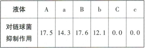 ②从液体 A、B、C 中各取等量液体,分别加入适量某种物质(该物质对链球菌没有影响)去除酸性物质,获得液体 a、b、c。