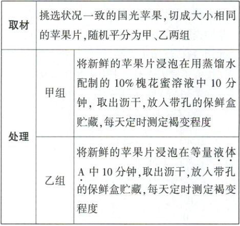 (填“生殖”或“营养”)器官。(2) 取材时,选择同状况、同品种的苹果进行实验是为了