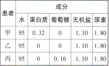 (4)尿常规是医学检验中“三大常规”项目之一,取甲、乙、丙三人尿液化验的结果,进行分析比较,得到如下数据(单位:g/100 mL),下列叙述不正确的是( )