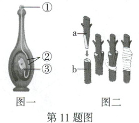(2)活动二 尝试嫁接。二组的同学模仿图二,把鸭梨的枝条[a]作为