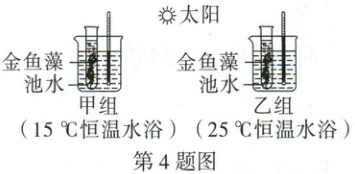 4. (2024适应性测试)某生物小组为了探究温度对金鱼藻光合作用的影响,设计了实验装置,在阳光下进行了相关实验,如图所示。下列说法错误的是(