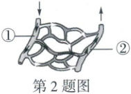 2. (2025 河北 19 题) 如图为某器官血管分布示意图,①②表示血管。进食馒头一段时间后,检测发现②内的葡萄糖多于①。该器官为 (