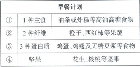 7. (2025 河北 22 题) 如图为营养学家根据《中国居民膳食指南(2022)》提出的“1+2+3+1”早餐公式。某同学据此为家庭制订了一周的早餐计划,如表所示。该计划中不合理的是 (