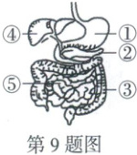 9. (2025 聊城) 如图为人体消化系统部分组成示意图。下列叙述错误的是 (