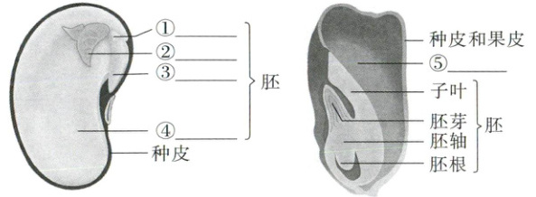 1. ①胚轴 ②胚芽 ③胚根 ④子叶 ⑤胚乳