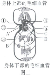 (6) 如图二为血液循环示意图,心脏是输送血液的泵,主要由