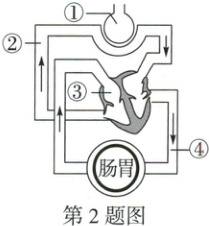2. (2025 广西)王大爷患急性肠胃炎,到医院治疗。注射的药物进入下腔静脉后,最先到达图中的(