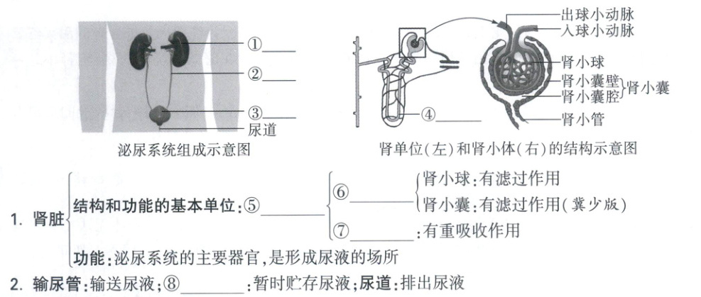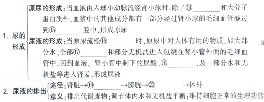 考点 2 尿液的形成和排出[2025.17;2024.28(1)第一、二空]