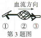 3. (2025 自贡)如图为人体某处毛细血管网与周边血管内血流方向示意图,下列叙述错误的是(