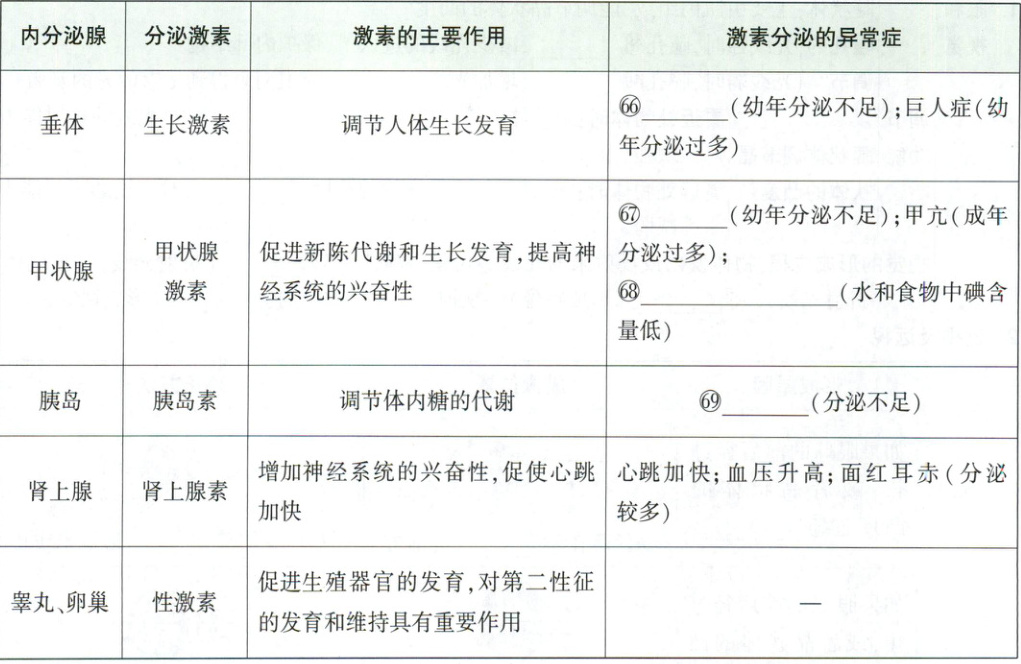 66侏儒症 67呆小症 68地方性 甲状腺肿 69糖尿病 70神经