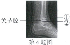 4. (2024河北16题)如图为某人左脚的踝关节射线透视图像,①②表示踝关节内的结构。下列说法错误的是 (