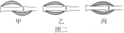(填器官名称)与外界的气体交换。(3)脊柱侧弯筛查时,可采用图二所示姿势,通过观察肩膀高低、腰窝对称等情况进行初步判断。该姿势双臂自然下垂,此时肱二头肌处于