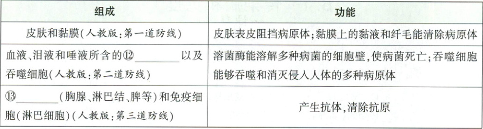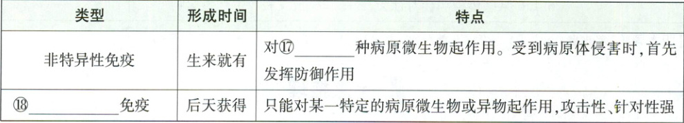 ⑫溶菌酶 ⑬免疫器官 ⑭淋巴细胞 ⑮抗体 ⑯特异 性 ⑰多 ⑱特异性 ⑲抗原 ⑳抗体