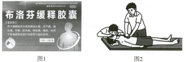 ,提醒同学们服用药物前,务必仔细阅读说明书,确保用药安全。(6)模拟急救环节将活动推向高潮。当面对模拟煤气中毒的“病人”时,同学们快速反应,将“病人”转移到通风处。若遇到“病人”心搏骤停的紧急情况,需立即对其实施图 2 中的