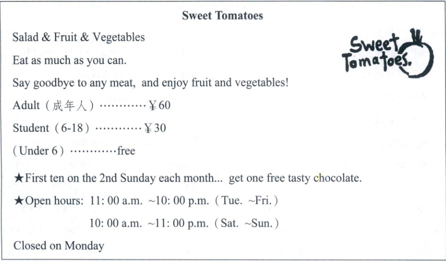 () 4. If Tom’s parents take his 15-year-old brother to have lunch at Sweet Tomatoes, how much will they pay?
