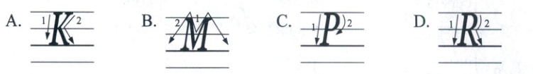 ) 3.Which letter is written in the wrong order (错误的笔画顺序)?