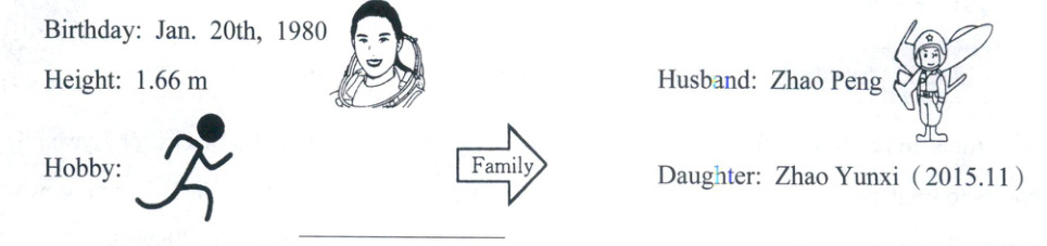 woman astronaut in China. She is forty-two years old. She was born in Yantai. She is tall and thin. She likes 2.running