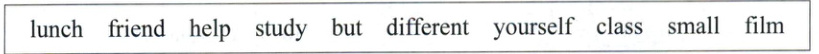 1.to study 2.helpful 3.class 4.friendly 5.different 6.smaller 7.But 8.yourself 9.film 10.lunch