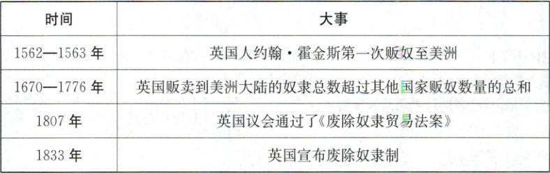 2. 下表是英国奴隶贸易过程中的大事摘录。这反映了(