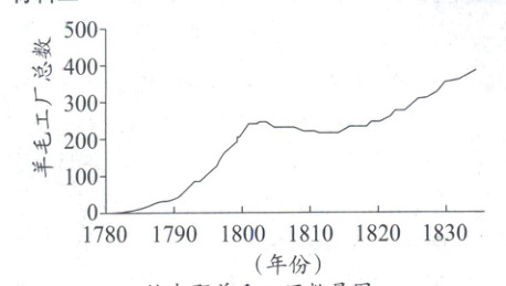 材料一 位于英国英格兰北部的约克郡西莱丁地区是 18 世纪英国重要的毛纺织业中心之一。其传统的生产组织形式是家内制,作坊主购进羊毛后,由家人生产,并雇佣几个帮工。一些呢绒商采用外包生产制,把计件工作分派给纺纱工、织布工等靠工资为生的人。19 世纪初期,在全面采用机器生产的基础上,纺织工业获得大发展。到 1850 年,该地区的布拉德福德已相继修建了公路、运河、铁路,连通国内国际市场,从世纪初的 1.6 万人小镇发展为 10 万人口的工业城市,成为精纺羊毛制品的国际贸易中心。