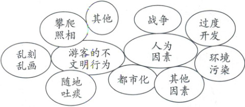 十三、破坏文化遗产的主要人为因素如下图,请你结合自己的生活实践,说说应如何保护文化遗产。