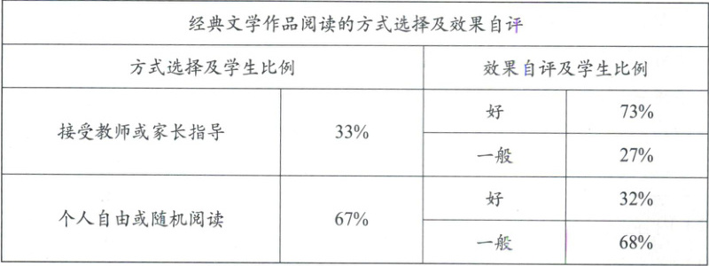经典文学作品的阅读,绝大多数同学更喜欢个人自由或随机阅读,但效果不如接受教师或家长指导好。
