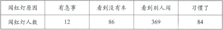 1. 下面是同学们在活动中整理的闯红灯原因统计表,请你用简洁的语言写出获得的主要信息。(不得出现数字)