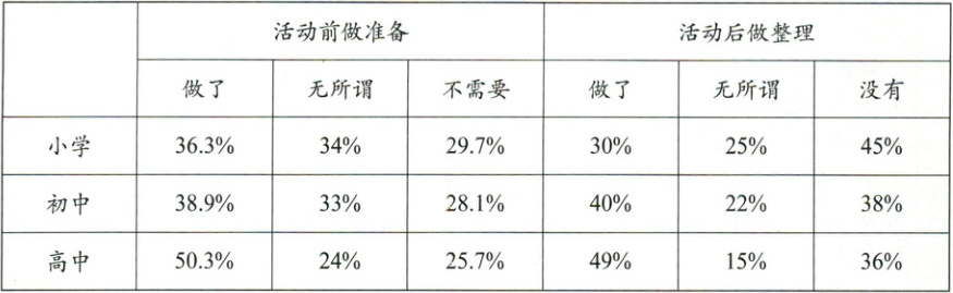 )。A. 小学生进行体育活动后做整理的比例比初中生的少