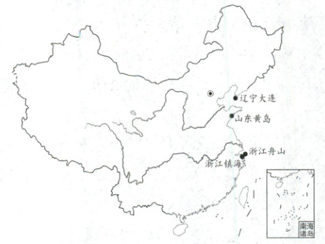 23. 读我国首批四个国家石油储备基地分布图,回答下列问题。(12 分)