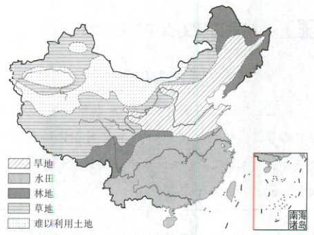 了人们的广泛关注。下图是我国土地利月类型分布