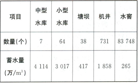 西海固是宁夏南部西吉、海原、固原等地区的统称。1972 年联合国世界粮食开发署将西海固地区确定为“不适宜人类生存的地区之一”。清水河是西海固地区的主要河流,该河河水苦涩,矿化度高,一般不能直接饮用。下表是清水河主要水利工程统计资料。