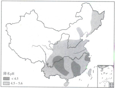 1. 材料所列地区中,处于重酸雨区的有(