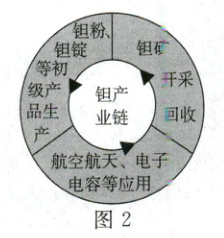 3.C 4.D 5.D 解析:3.工业产业链各产业之间存在明显的工业联系,随着产业链的不断深入,自然资源的加工水平越来越完善,附加值越来越高。 结合图2可知,位于钽产业链上游的应是矿产资源的勘探与开采,C项正确。 勘探开采后是矿石贸易,B项错误。 初级产品加工位于产业链中游,A项错误。 产业链末端是钽产品应用,D项错误。 故选C项。4.结合图1可知,我国钽表观消费量比美国小,A项错误。 结合材料可知,我国钽的生产和出口以钽粉、钽锭等初级产品为主,B项错误,D项正确。 材料及图示未能说明我国及美国的钽矿资源的实际产量大小,C项错误。 故选D项。5.结合所学知识可知,应对钽资源对外依存度高的特点,应加强钽资源储备;同时我国以出口钽粉、钽锭等初级产品为主,技术水平较低,应该进行技术升级提高附加值,③④正确。 扩大出口量将导致钽资源进一步短缺,①错误。 钽属于非可再生资源,应该进行保护性开发,②错误。 故选D项。