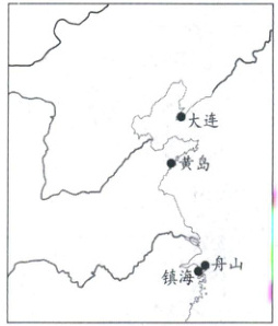(2025 宁夏石嘴山练习)我国首批选定的国家石油储备基地有 4 个:镇海(浙江省宁波市)、舟山(浙江省舟山市)、黄岛(山东省青岛市)、大连(辽宁省大连市)。截至 2017 年,我国已在浙江舟山等地建立 9 个国家石油储备基地。读图,回答 3~4 题。