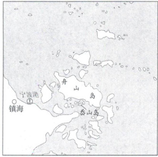 舟山国家石油储备基地位于浙江省舟山市岙山岛,其储备的石油主要来源于中东地区、拉丁美洲和俄罗斯,且以中东地区为主。岙山岛有良好的深水岸线资源,可利用岸线约 2.2 km。该基地是首批 4 个国家石油储备基地之一,另外 3 个分别位于浙江宁波镇海、山东青岛黄岛和辽宁大连。下图为岙山岛位置示意图。读图,回答 1~2 题。