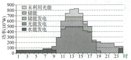 (2025新疆喀什模拟)规划建设中的西藏那曲河多能互补基地,综合利用光能、水能、储能(抽水蓄能与电化学储能)等,优先使用光能。下图示意该基地枯水期典型日多能互补模拟运行状况。读图,回答5~7题。