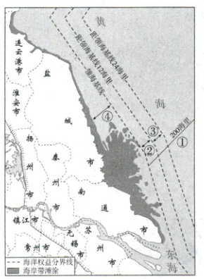 例 2 我国是一个海洋大国,开发海洋国土、建设海洋强国已经成为我国的重要发展战略。下图是江苏省附近海域领海基线分布图。读图,回答(1)~(3)题。