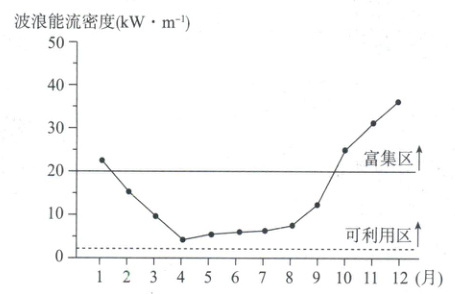 材料三 波浪能流密度是表征波浪能资源丰富程度的指标。下图为我国南海某岛礁附近海域月均波浪能流密度变化图。