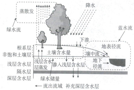 20. 若流域内的降水不变,而蓝水流与绿水流显著减少时,流域内(