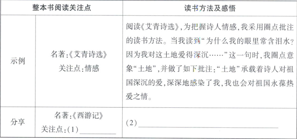 请结合《西游记》内容,仿照示例,完成你的阅读分享。
