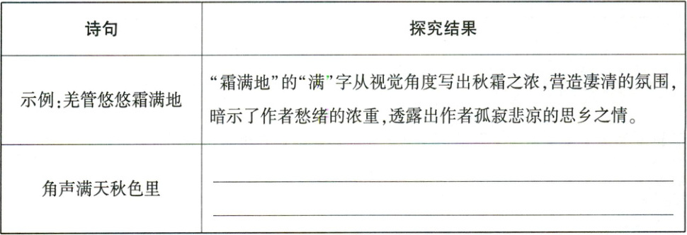 1. 比较阅读是学习古诗文的好方法,下面是王园同学的学习笔记,请你帮她补全表格中的内容。(2分)