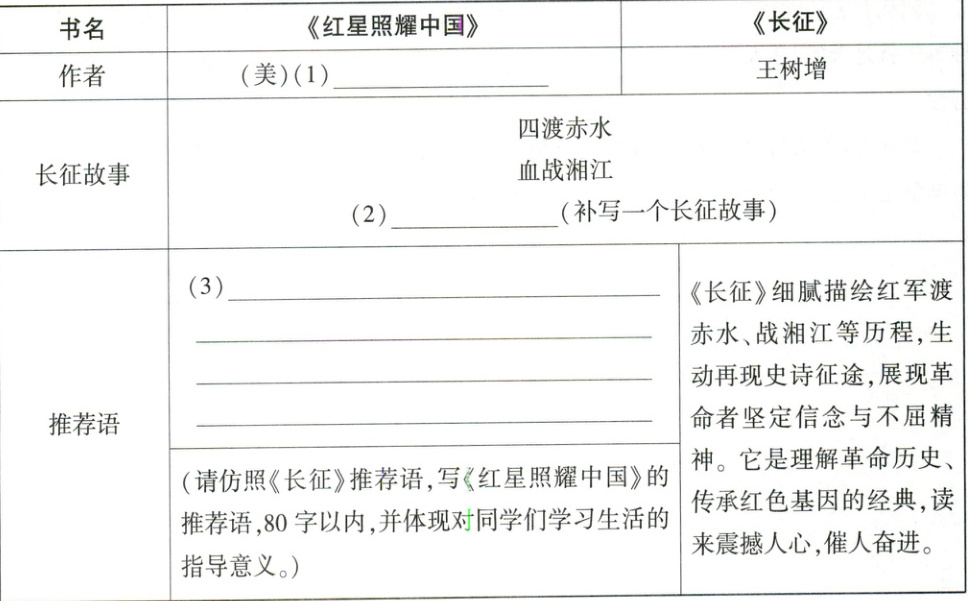 一、(广东广州.期中)班级开展《红星照耀中国》名著阅读活动,请你参与活动,完成以下任务。(7分)