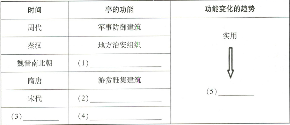 4 第③段。这句话是说亭开始在园林中出现,第④段说明隋唐时亭的数量激增,且普遍于园林中建亭,第③④两段按时间顺序说明亭的发展,所以这段话应放在第③段,补充说明魏晋南北朝时亭的发展。(4分)