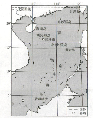 材料一 南海有丰富的生物资源,鱼、虾、蟹、贝等种类丰富。南海海底资源也十分丰富,尤其是海底石油和天然气储量巨大,其次是各种金属矿产资源。南海诸岛岛礁上环境优美、景色迷人。