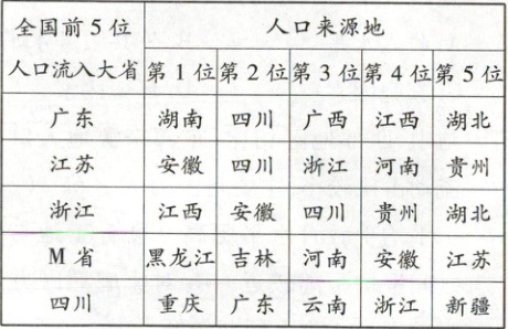 (2)M 省流入的人口受历史渊源影响明显,M 省最有可能是哪个省?
