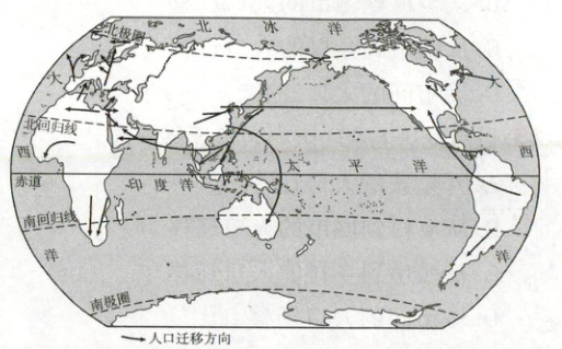 (1)根据材料一,说明目前国际人口迁移的基本方向。